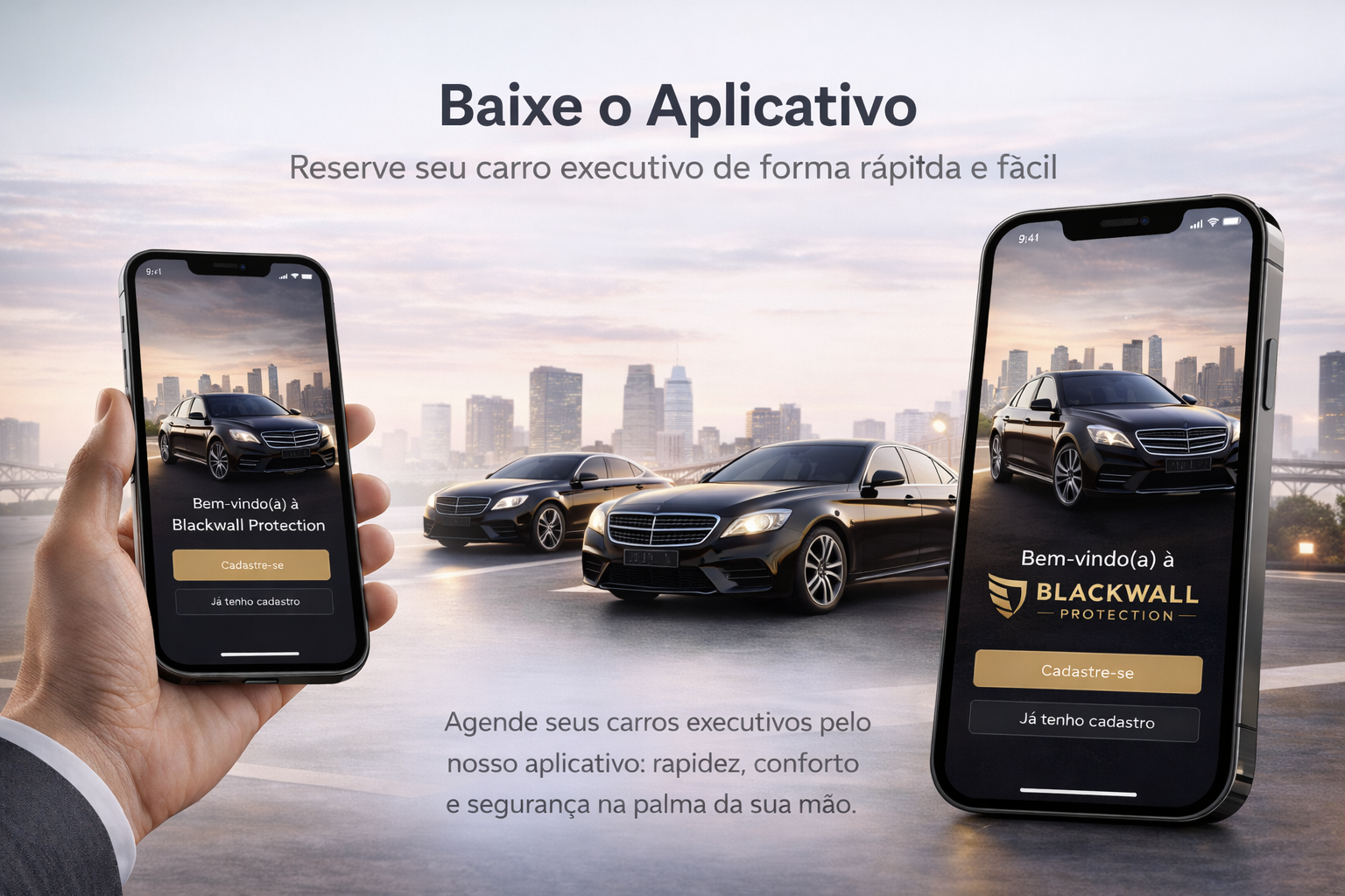 Tenha o controle do seu deslocamento na palma da mão. Com o aplicativo Blackwall Protection, você solicita seu carro executivo em poucos toques, acompanha o atendimento em tempo real e conta com conforto, segurança e discrição do início ao fim da sua jornada.